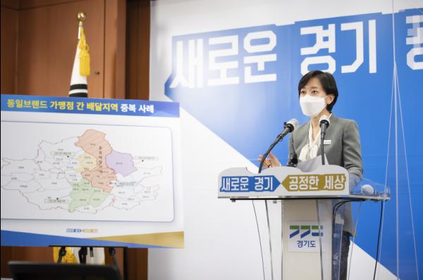 김지예 경기도 공정국장은 23일 이런 내용을 담은 ‘온라인 배달영업지역 중첩현황 실태조사’ 결과를 발표하고 “온라인 플랫폼 내 영업지역을 둘러싼 ‘점주와 점주’, ‘본사와 점주’간 갈등이 앞으로 급증할 우려가 있다. 가맹본부, 점주, 온라인 플랫폼사, 소비자 모두에게 합리적이고 공정한 경제구조를 위한 상생방안을 마련하겠다”고 말했다.