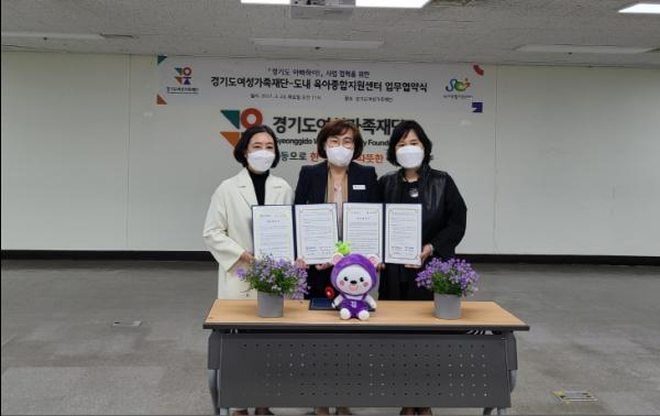경기도여성가족재단이 23일 수원 재단 회의실에서 도내 27개 육아종합센터와 ‘경기도 아빠하이!’ 사업 업무 협조와 운영 지원을 위한 업무협약을 체결했다.
