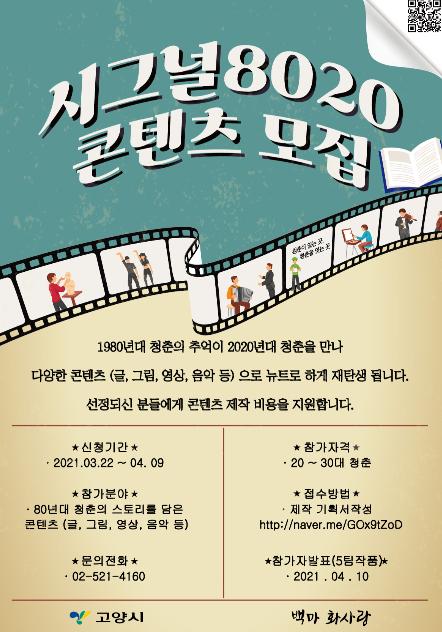 오는 4월 9일(금)까지 시그널 8020 지원서모집 링크 혹은 공모 포스터의 QR코드를 통해 접속해 제작 기획서를 작성하면 된다. 총 5개팀의 작품을 선정할 예정이며, 선정된 팀에게는 콘텐츠 제작비를 지원한다.