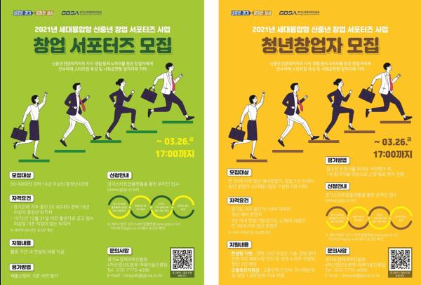 경기도와 경기도경제과학진흥원은 신중년의 노하우와 청년 아이디어를 융합해 성공 창업을 도모하는 ‘2021년도 세대융합형 신중년 창업 서포터즈’ 사업을 추진한다고 밝혔다.