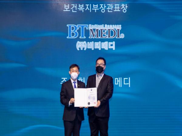 이번 수상은 외국인 환자 유치 및 한국 의료 시스템 해외 진출 분야에서 우수한 성과를 거둬 대한민구 의료의 우수성을 세계에 알리고, 보건의료산업의 발전에 기여한 공로를 인정받은 결과다. 이로써 ㈜비티메디는 2015년 보건복지부장관상 수상에 이어 두 번째 유공포상을 수상하게 됐다.