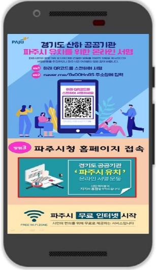 시는 무료 와이파이 접속화면을 통해 시민들이 시의 주요정책을 인지하고 통신비 부담 없이 스마트폰을 통해 서명운동에 참여할 수 있는 좋은 계기가 될 것으로 예상하고 있다.