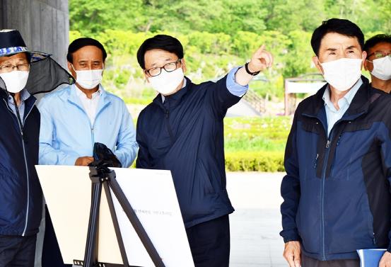 최종환 파주시장이 지난 14일 파평면 율곡리에 위치한 율곡수목원 조성사업 현장을 방문해 사업추진 상황을 점검했다.