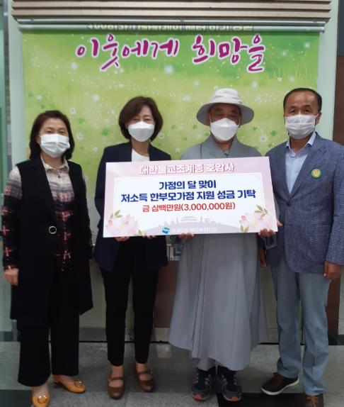 의정부시 호원2동주민센터는 호원2동 소재 대한불교조계종 호암사가 5월 14일 지역사회 내 도움이 필요한 저소득 한부모가정 등 경제적 어려움을 겪는 가정에 사용해 달라며 후원금 300만 원을 기탁했다고 밝혔다.