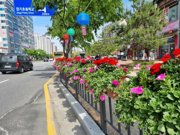 꽃피는 거리 조성사업은 추후 7월과 9월에 2회 추가 식재를 하게 되며, 특히 이번 사업부터 자동 관수 방식을 도입하여 꽃 관리 효율은 물론, 예산 절감에도 기여하는 관리 계획으로 오랫동안 아름다운 경관을 유지할 수 있도록 하였다.