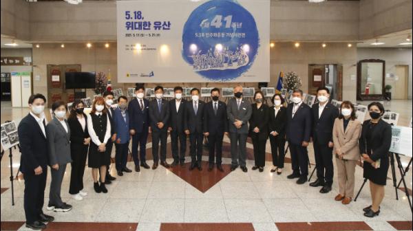 경기도의회 교섭단체 더불어민주당(대표의원 박근철, 의왕1)은 5·18 광주 민주화 운동 41주년을 앞두고 17일 9시 30분에 의회 1층 로비에서 「5·18 위대한 유산2」의 주제로 5·18 민주화 운동 기념사진전 개막식을 개최했다.