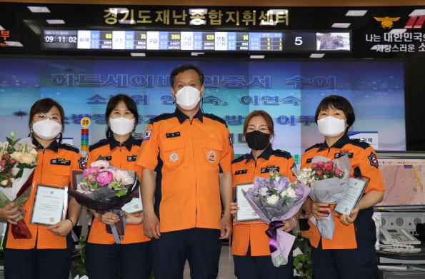 경기도 소방재난본부는 17일 소중한 도민의 생명을 구한 119상황요원과 구급상황관리사 4명에게 하트세이버 인증서를 수여했다.