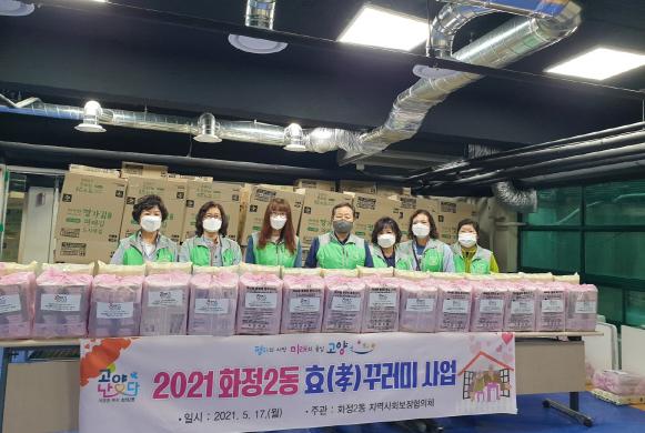 고양시 덕양구 화정2동(동장 김현정) 지역사회장보장협의체(위원장 박윤규)는 지난 17일 관내 독거어르신 465세대에 ‘효(孝) 꾸러미’를 전달했다고 밝혔다.