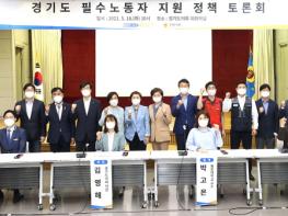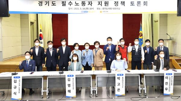 경기도의회 경제노동위원회와 경기도 노동국이 공동 주최한 ‘필수노동자 지원 정책 토론회’가 5월 18일 10시 경기도의회 대회의실에서 개최됐다.