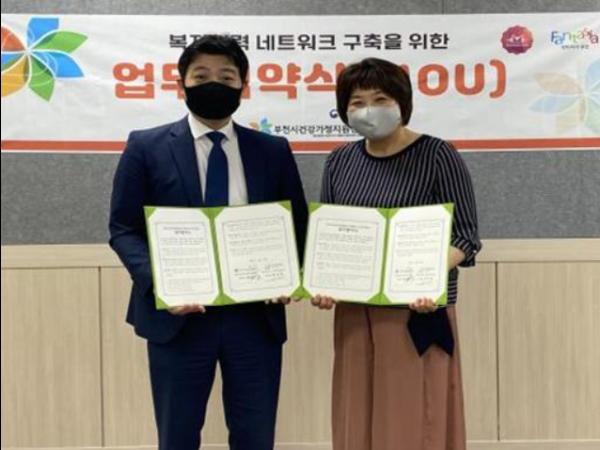 부천시건강가정지원센터와 굿네이버스 경기지역본부는 상호 인적·물적 자원의 교류 활성화와 협력체계 구축을 위해 지난 17일 업무협약을 체결했다.