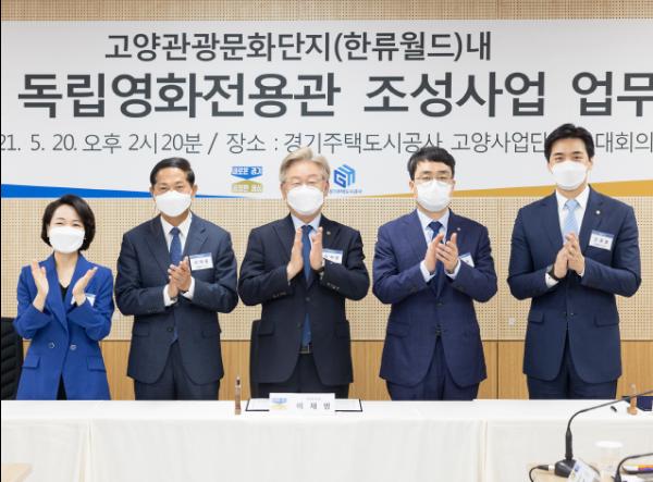 한편, 이재명 지사는 이날 GH 고양사업단에서 이재준 고양시장, 이헌욱 GH 사장과 ‘고양관광문화단지 주차장 및 독립영화전용관 조성사업 업무협약’도 체결했다. 협약식에는 홍정민․한준호 국회의원, 김경희 도의원, 진모영 영화감독, 추상미 영화감독, 정상진 DMZ국제다큐멘터리영화제 집행위원장 등이 함께했다.