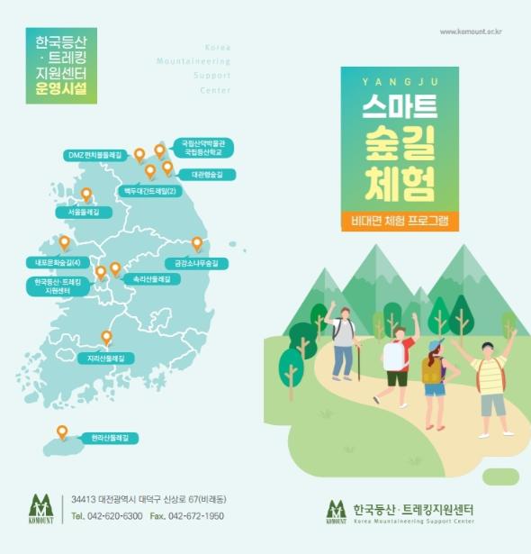 프로그램은 코로나19로 인한 거리두기 상황을 고려해 비대면으로 진행하며, 기타 자세한 사항은 한국등산‧트레킹지원센터 홈페이지에서 확인 및 숲길관광실로 문의할 수 있다.