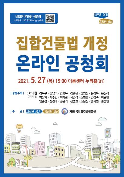 경기도가 오는 27일 국회의원 21명과 공동으로 ‘집합건물법 개정 온라인 공청회’를 개최한다.