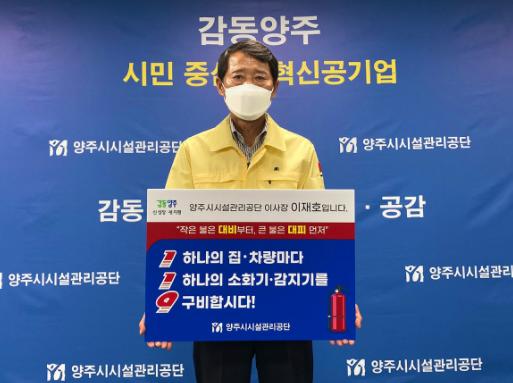 양주시시설관리공단 이재호 이사장은 21일, 소방안전용품과 화재예방의 중요성을 알리는 ‘119 릴레이 챌린지’에 동참했다.