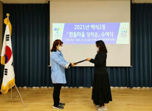 ‘흰돌마을 장학금’ 지원 사업은 백석2동 지역사회보장협의체가 학생들의 성취감과 학업의욕을 높이고 건강한 사회인으로 성장하도록 돕고자 협의체 특화사업으로 추진하게 되었으며 4년째 이어오고 있다.