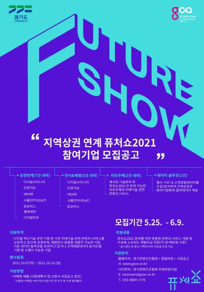 경기도는 도내 지역상권과 연계한 미래기술 체험·전시행사인 ‘퓨처쇼 2021’에 참여할 기업을 모집한다고 25일 밝혔다.