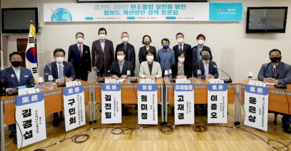 경기도의회 원미정 의원(더불어민주당, 안산8)이 좌장을 맡은 「경기도 2050 탄소중립 실현을 위한 법제도 개선방안 정책 토론회」가 24일(월요일) 오후 2시에 경기도의회 소회의실에서 개최됐다.