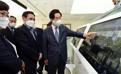 스마트 청사 안내시스템은 터치형 스크린을 통해 시청 내 각 부서 위치, 직원업무, 부재사항 등의 정보를 제공하는 시스템으로, 해당기능 외에도 부서(업무)검색, 공지사항 알림, 홍보영상 표출 등 다양한 정보를 비대면으로 제공하는 기능이 탑재된 시스템이다. 의정부시는 시청에 키오스크형 3대, 부서형 33대 등 총 36대의 단말기를 설치하여 운영 중이며, 향후 시민 반응에 따라 사업소 및 동 주민센터 등으로 설치범위를 확대할 계획이다.
