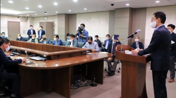 27일 파주시청 비즈니스룸에서 이주현 파주시 평화기반국장이 지하철3호선(일산선) 파주연장과 관련한 오해와 불신 확산방지를 위해 직접 브리핑에 나섰다.