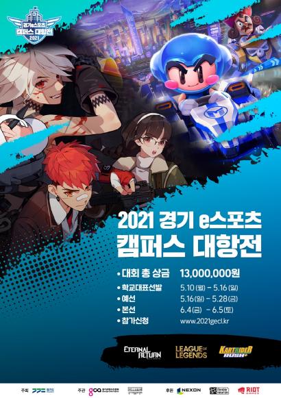‘경기 이스포츠 캠퍼스 대항전’은 디지털 세대의 새로운 문화로 자리 잡은 이스포츠를 통해 코로나19로 침체된 대학문화를 활성화시키기 위해 기획됐다. 수도권(경기, 서울, 인천) 소재 대학에 재학 중인 대학생들이 대학 단일팀을 구성해 타 대학과 대결하는 대항전 형태로 진행되며, 총상금은 1,300만 원 규모다.