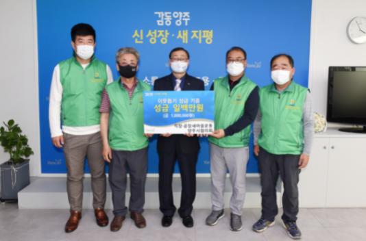 양주시는 지난 2일 직장·공장 새마을운동 양주시협의회(회장 오수영)에서 양주시청을 방문해 관내 소외되고 어려운 이웃들을 위해 써달라며 성금 1백만원을 기부했다고 밝혔다.