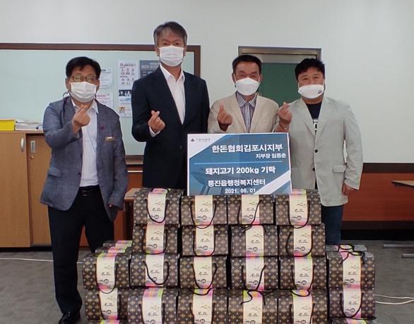 임종춘 한돈협회 김포시지부장이 1일 통진읍행정복지센터를 방문하여 관내 어려운 이웃을 위해 돼지고기 200kg을 기탁했다.