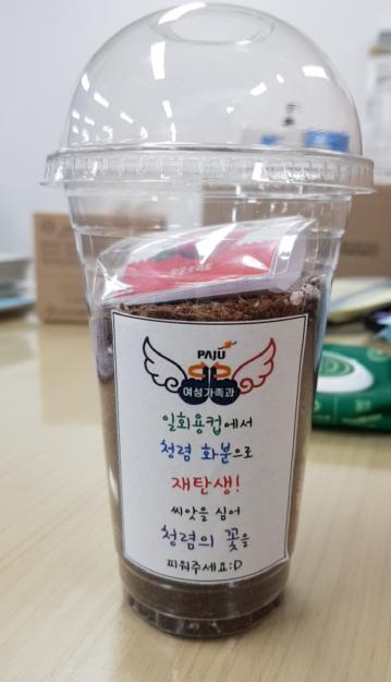 파주시 여성가족과는 청렴실천의 일환으로 카페 ‘안단테153’과 함께 청렴 화분 나눔 사업을 시작했다.