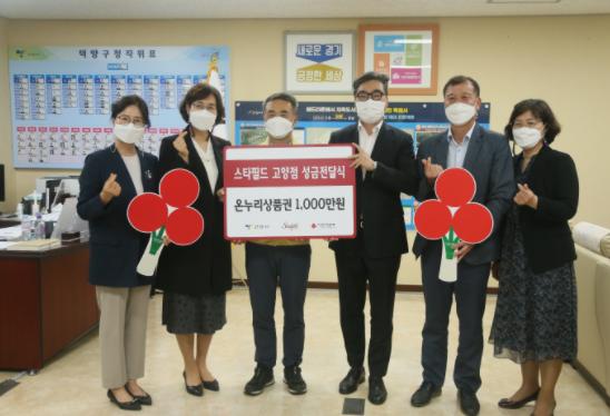 스타필드 고양은 고양시 덕양구 창릉동 저소득 취약계층 돌봄 사업 추진을 위한 후원금 일천만 원을 지난 3일 덕양구청에 전달하는 행사를 가졌다.