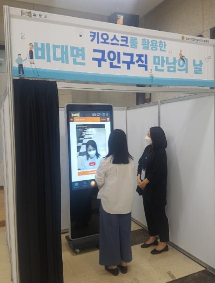 비대면 면접은 키오스크에 입력된 기업정보를 확인 후 구직자가 직접 원하는 기업을 선택, 사전 입력된 질문에 답하고 그 영상을 기업에 전송하는 방식으로 진행되었다.