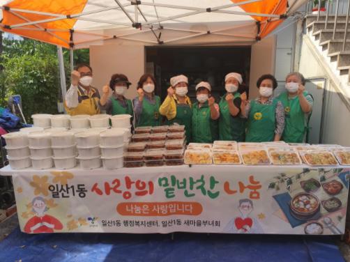 일산1동 새마을부녀회 회원들은 이른 아침부터 나와 밑반찬을 조리하였으며, 지역사회보장협의체 위원들은 지원 대상자를 추천하고 물품을 배분하는 일에 참여, 이웃사랑을 실천했다.