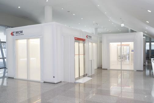 한국의 기후와 지반 실정을 반영해 다용도 조립이 가능하고 이동·설치·확장이 쉽도록 설계한 에어텐트 구조의 블록형 모듈로 중증도 이상 환자치료를 위한 A급 이동형 음압병실 모듈이다.