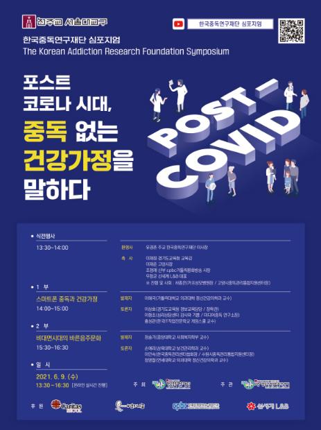 센터는 코로나19 시대에 점점 심각해지는 중독 문제에 대한 인식을 개선하고 해결방법을 모색하기 위해 ‘포스트 코로나시대, 중독 없는 건강가정을 말하다’라는 주제로 심포지엄을 연다.
