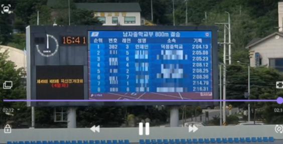 안제민 학생은 출발과 동시에 빠른 속도로 경쟁 선수들을 제치며 달려 나갔고 3 코너를 돌면서부터는 멀찌감치 앞서 1위를 유지하며 결승선을 통과했다.