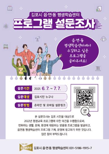 김포시는 오는 6월 7일부터 7월 7일까지 2022년 김포시 읍면동 평생학습센터 개설 프로그램에 대한 시민 의견을 수렴한다.