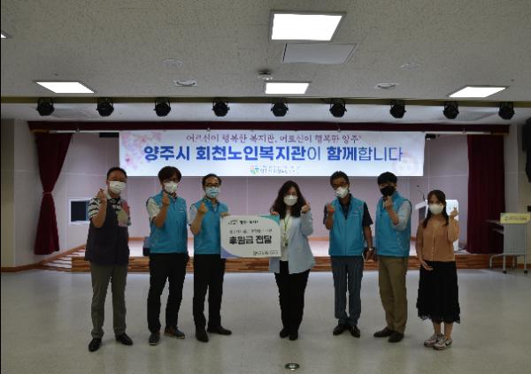 양주시는 한국수자원공사 양주수도지사에서 6월 9일 회천노인복지관에 후원금을 전달했다고 밝혔다.