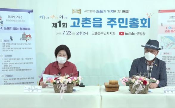 고촌읍 주민자치회는 7월 23일 오후 2시 고촌읍주민자치회 유튜브 채널을 통해 생방송으로 자치계획 수립의 결과를 공유하는 온라인 주민총회를 개최했다.