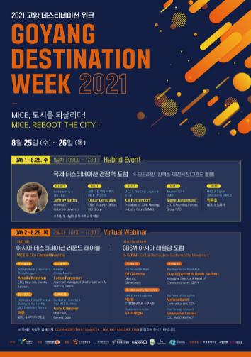 고양시가 주최하고 고양컨벤션뷰로가 주관하는 ‘2021 고양 데스티네이션 위크’가 8월 25일(수) ~ 26(목) 이틀 간 킨텍스 그랜드 볼룸에서 하이브리드(온·오프라인 병행)로 개최된다.