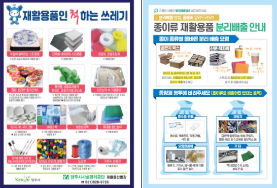 양주시시설관리공단은 코로나19 장기화로 시민들의 실내 생활 시간이 늘어남에 따라 재활용품 배출량이 지속 증가하여, 이에 따른 분리배출 홍보에 총력을 다하고 있다.