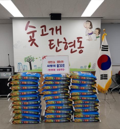 고양시 일산서구 탄현동 행정복지센터에서는 지난 27일 익명의 탄현동 주민으로부터 ‘사랑의 쌀 20kg 30포’를 기부 받았다고 밝혔다.