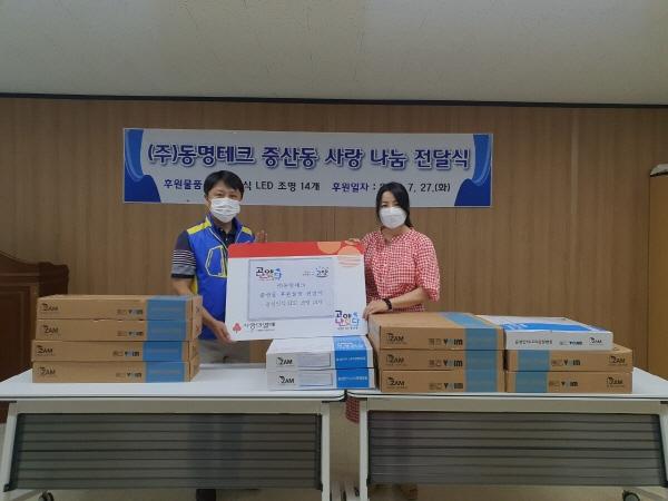 고양시 일산동구 중산동 행정복지센터는 지난 27일 ㈜동명테크에서 음성인식 LED 조명을 후원받아 전달식을 하였다고 밝혔다.
