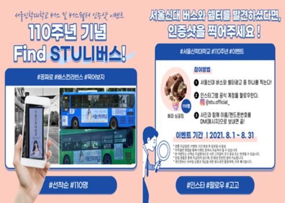 한편, 서울신학대학교 입학처는 8월 한달간 ‘110주년 기념 Find STU니버스!’ 이벤트를 진행한다. 서울신대 버스광고와 쉘터광고를 촬영하여, 학교공식 인스타그램 메시지(DM)로 보내는 방식으로 참여할 수 있으며, 추첨을 통해 선착순 110명에게 경품이 제공된다.