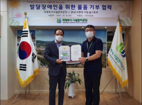 의정부시시설관리공단은 관내 사회적 기업인 “희망을 심는 나무 사회적 협동조합 숲스토리”와 협력을 추진하여 직원의 기증 물품을 지속적으로 기부하여 사회적 가치 증진을 위해 노력하겠다“고 밝혔다.