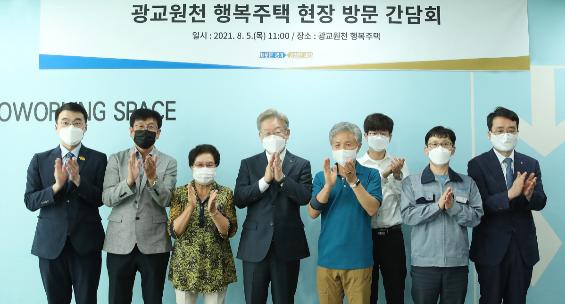 이재명 지사는 5일 수원시 영통구에 위치한 광교원천 경기행복주택을 방문해 에어컨 설치 현장을 둘러보고, 입주민들과 간담회를 가졌다.