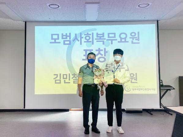양주시장애인종합복지관은 2021년 8월 5일 오전 9시, 양주시청(양주시장애인종합복지관) 소속 김민철 사회복무요원의 경기북부병무지청장 표창장 수여 전달식을 가졌다.