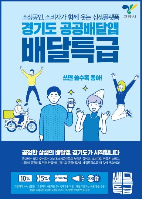 공공배달 앱 ‘배달특급’은 고양시에 지난달 1일부터 도입됐다. 광고비가 없고 중개수수료도 1%라 소상공인 부담이 월등히 낮다. 고양페이를 등록해 사용할 수 있는 유일한 배달 앱인데다 매월 다양한 할인 이벤트가 진행돼 시민들에게도 인기다.