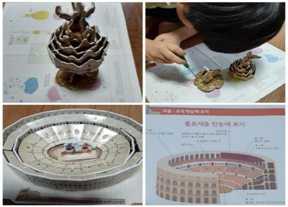 프로그램은 지난 7월 20일부터 8월 6일까지 3주간 진행됐다. 각 가정에 3종의 우리역사(삼국시대)와 1종의 세계역사(고대 로마)의 교재를 제공하고 아동들이 입체설계도를 보며 역사유족·유물을 직접 만들어 완성품을 인증하는 방식으로 진행됐다.