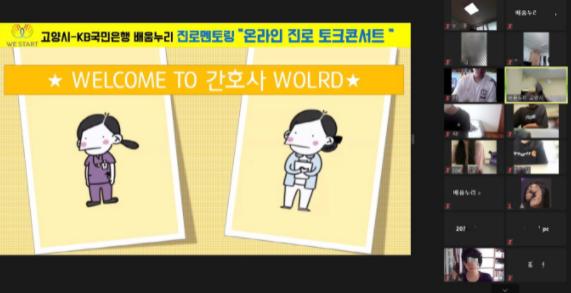 고양시 KB국민은행 배움누리가 지난 4일 관내 저소득가정 청소년 22명을 대상으로 진로 탐색과 동기부여를 위해 전문 분야 직업군을 초빙해 온라인 진로 멘토링을 진행했다.
