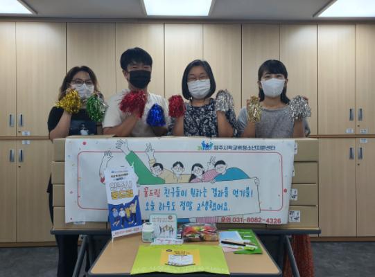코로나19 사회적 거리두기 4단계 시행으로 대면프로그램이 비대면으로 전환되면서 검정고시를 준비하는 학교 밖 청소년들이 스스로 모의고사를 진행할 수 있도록 모의고사 학습지, 필기구, 손소독제, 간식 등으로 구성된 ‘합격 응원 꾸러미’를 직접 제작해 비대면으로 전달했다.