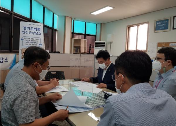 경기도의회 유상호 의원(더불어, 연천)은 6일, 경기도의회 연천상담소에서 연천교육지원청 경영지원과장, 시설팀장, 재정지원팀 관계자들과 연천 은대초 체육관 증축사업 추진 계획에 대한 정담회를 가졌다.