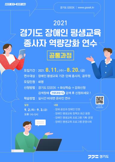 경기도가 ‘장애인 평생교육 종사자 역량강화 온라인 연수’ 참가자를 8월 11일부터 20일까지 모집한다.